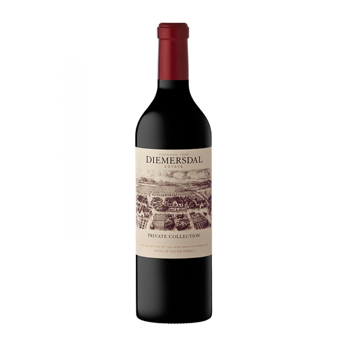 Der «Private Collection» von Diemersdal ist eine klassische Bordeaux-Assemblage. Die Reben stehen auf roten, relativ schweren «Hutton»-Lehmböden und sind zwischen 18 und 29 Jahre alt. Die einzelnen Rebsorten wurden zum jeweiligen optimalen Zeitpunkt gelesen und separat vinifiziert. Die alkoholische Gärung erfolgte für 5-7 Tagen bei zwischen 24°C und 28°C für 5-7 Tage mit regelmässiger Battonage. Nach der malolaktischen Gärung wurde die Private Collection in zu 40% neuen französischen Barriques mit einem Fassungsvermögen von 225 Litern für 20 Monaten ausgebaut. In der Nase zeigen sich zunächst tiefe dunkle Schokoladen und verlockende Zedernholzaromen, gefolgt von Noten nach Brombeerkonfitüre, Kirsche und Cassis. Der feste, gut strukturierte Gaumen zeichnet sich durch robuste, aber süße Tannine und eine breite Palette von Aromen aus, die von Schwarzkirsche und roten Früchten reichen und von der Fülle der Eichen- und Vanillenoten getragen werden. Jetzt ist er lang und weich, mit einem faszinierenden Charakter, der sich in den kommenden Jahren weiter entwickeln wird. Hinweis: Kann Sulfite enthalten